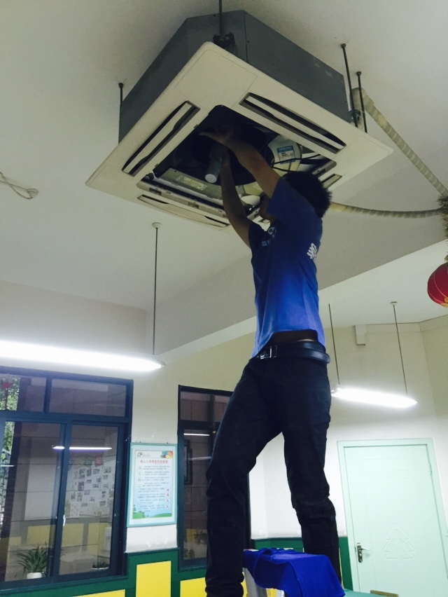 2015年5月23日正式開始清洗沙坪壩樹人小學教室和教師宿舍內的天花機、掛機、柜機以及窗機。