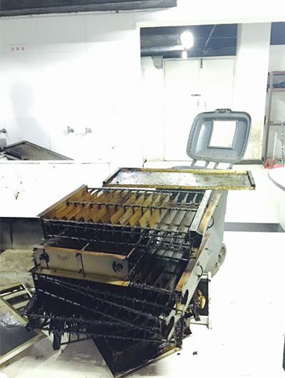 2015年4月27日早上8點到晚上6點,3個工人師傅,歷經9個小時的辛苦工作,終于把索菲特酒店食堂20余臺油煙機清洗完畢,獲得酒店廚房總監和經理的一致好評。